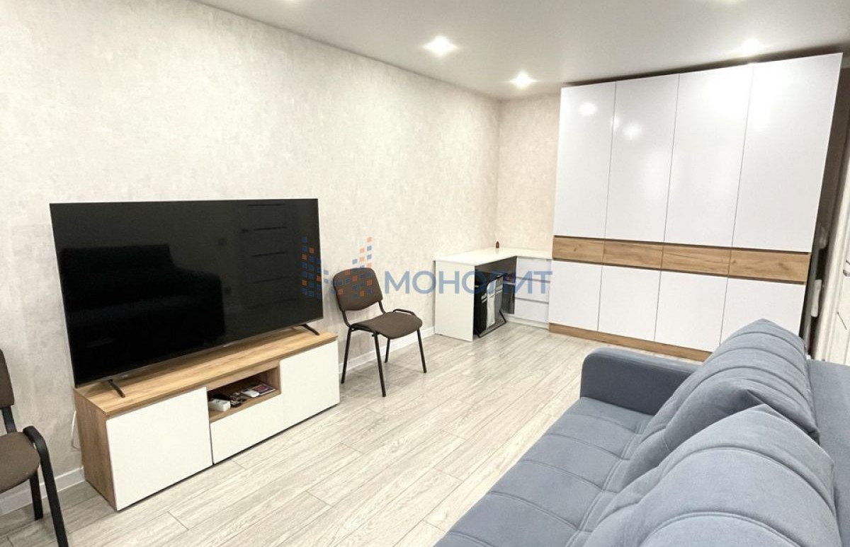 * **Жилая комната:** удобный диван, вместительные шкафы.