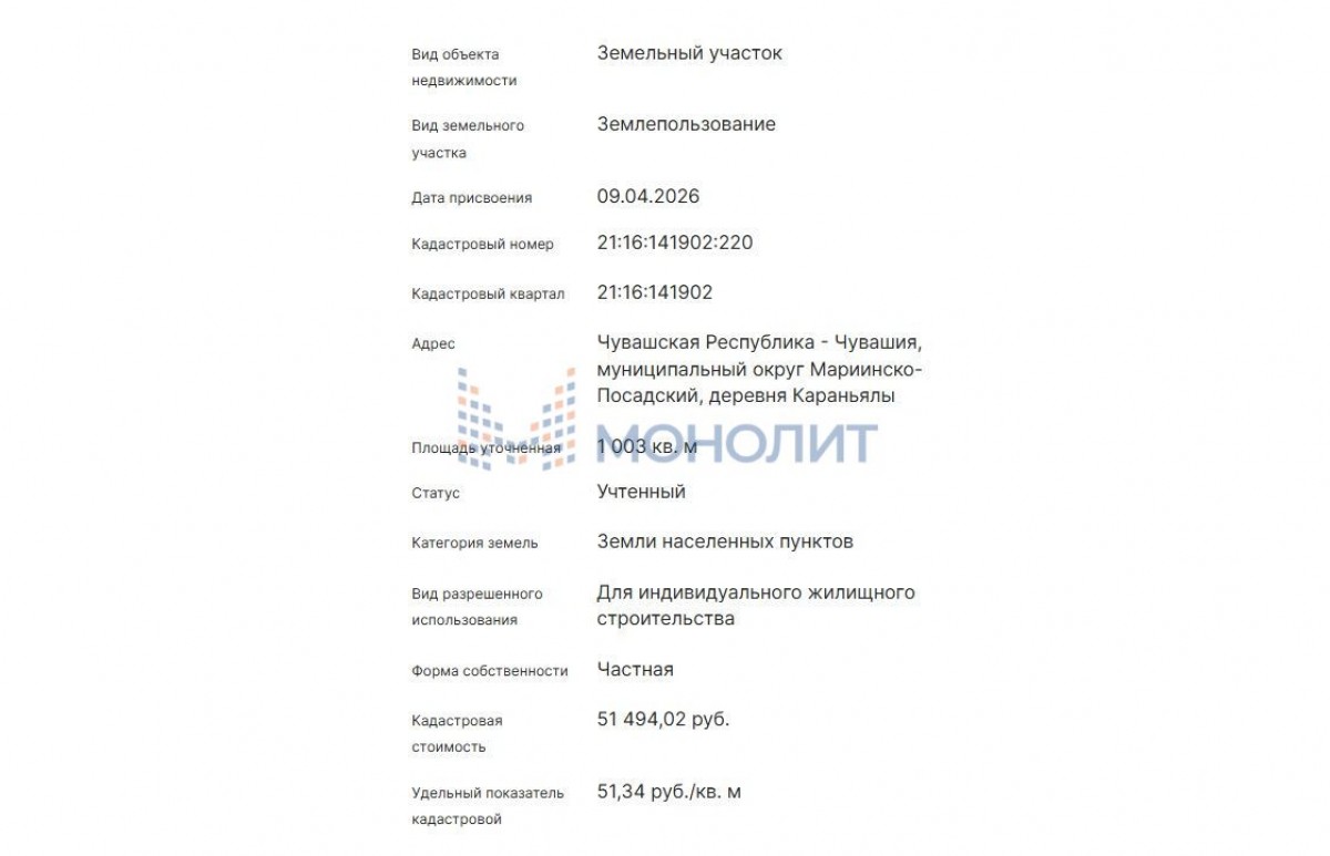 кадастровый номер: 21:16:141902:220
